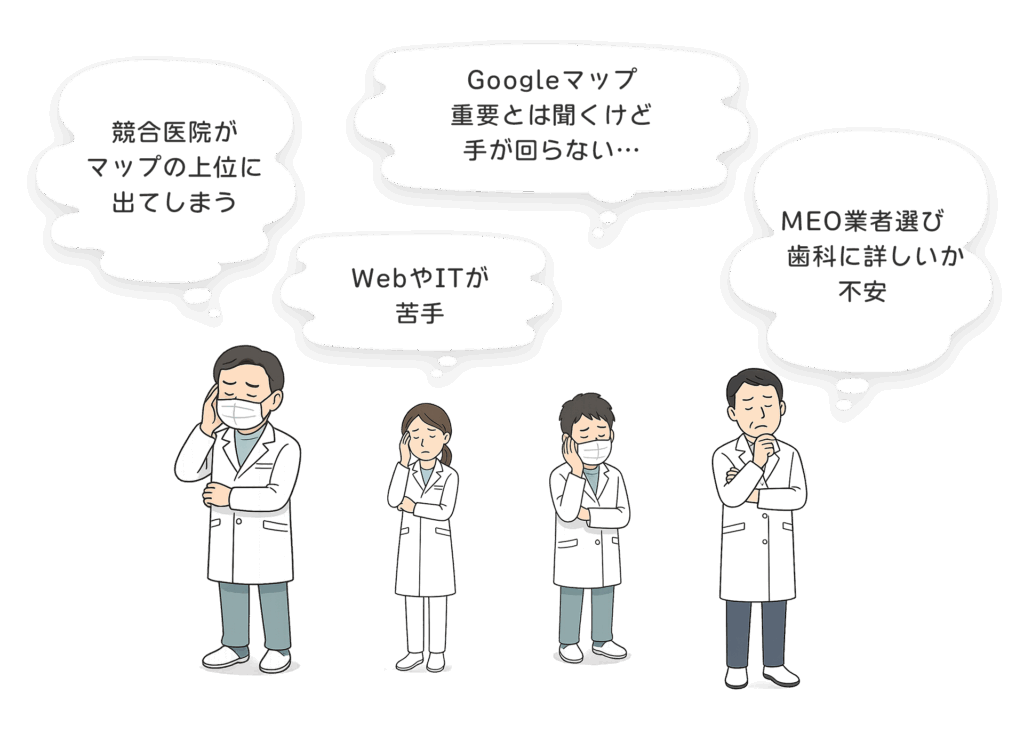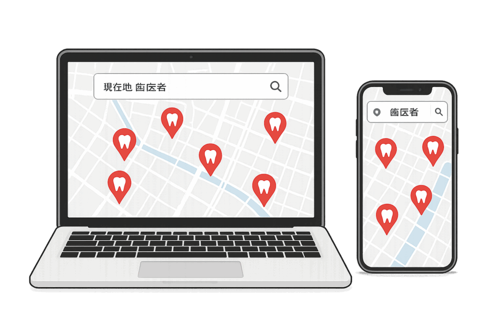 MEOとは、Googleマップで自分の歯科医院を上位に表示させるための対策です。医院名などの基本情報や、投稿・口コミなどを整備し、検索した人に選ばれやすくします。